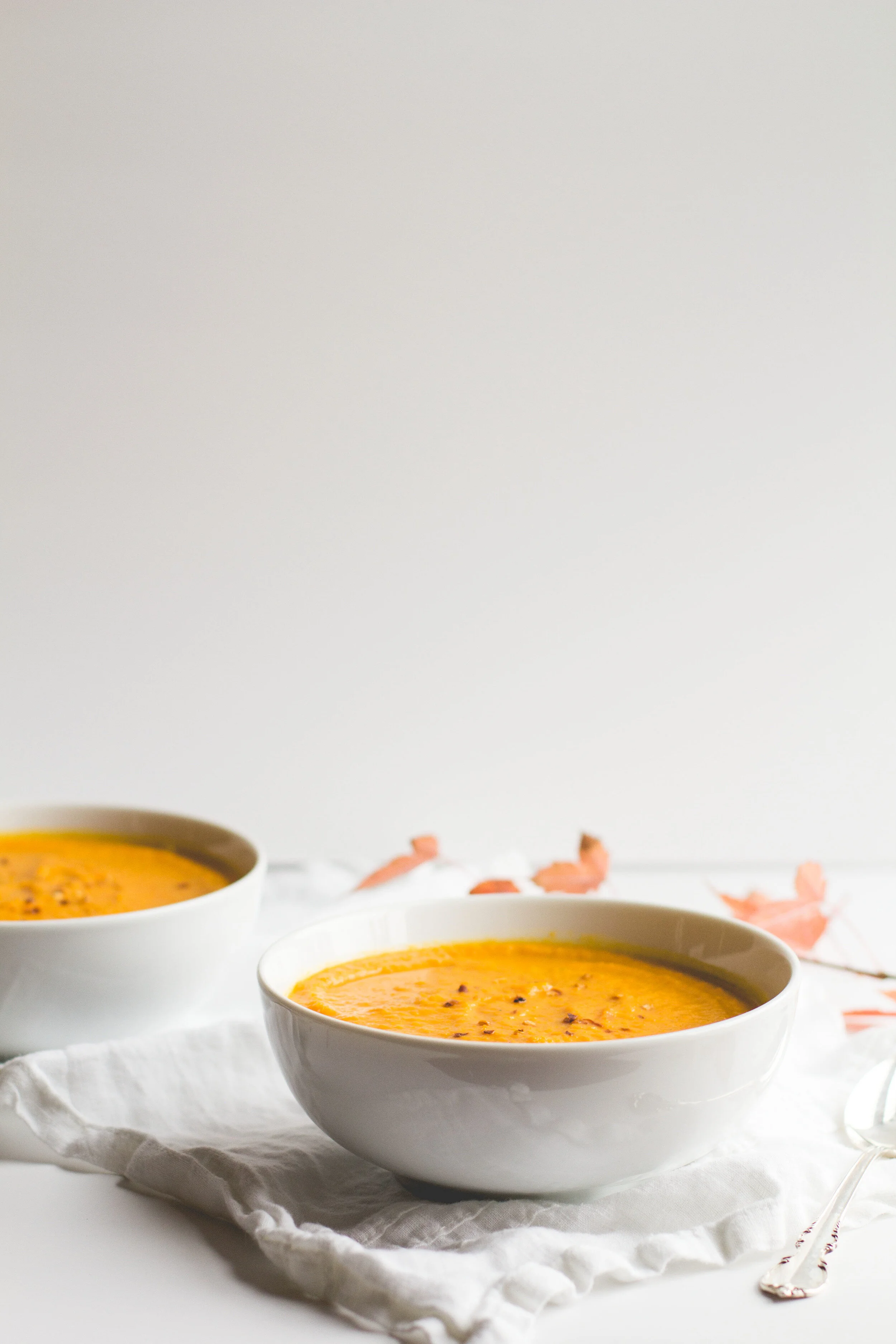 This recipe has a little spice from red pepper flakes (although you can leave them out if you'd like). It's the perfect recipe to enjoy during the cold-weather months, freezes well and works great as a starter for your Thanksgiving or Christmas dinner (I can't believe I'm already talking about holiday food!). It's also dairy-free, vegetarian, gluten-free and Whole30 compliant (but don't worry omnivores - you'll love it too!).