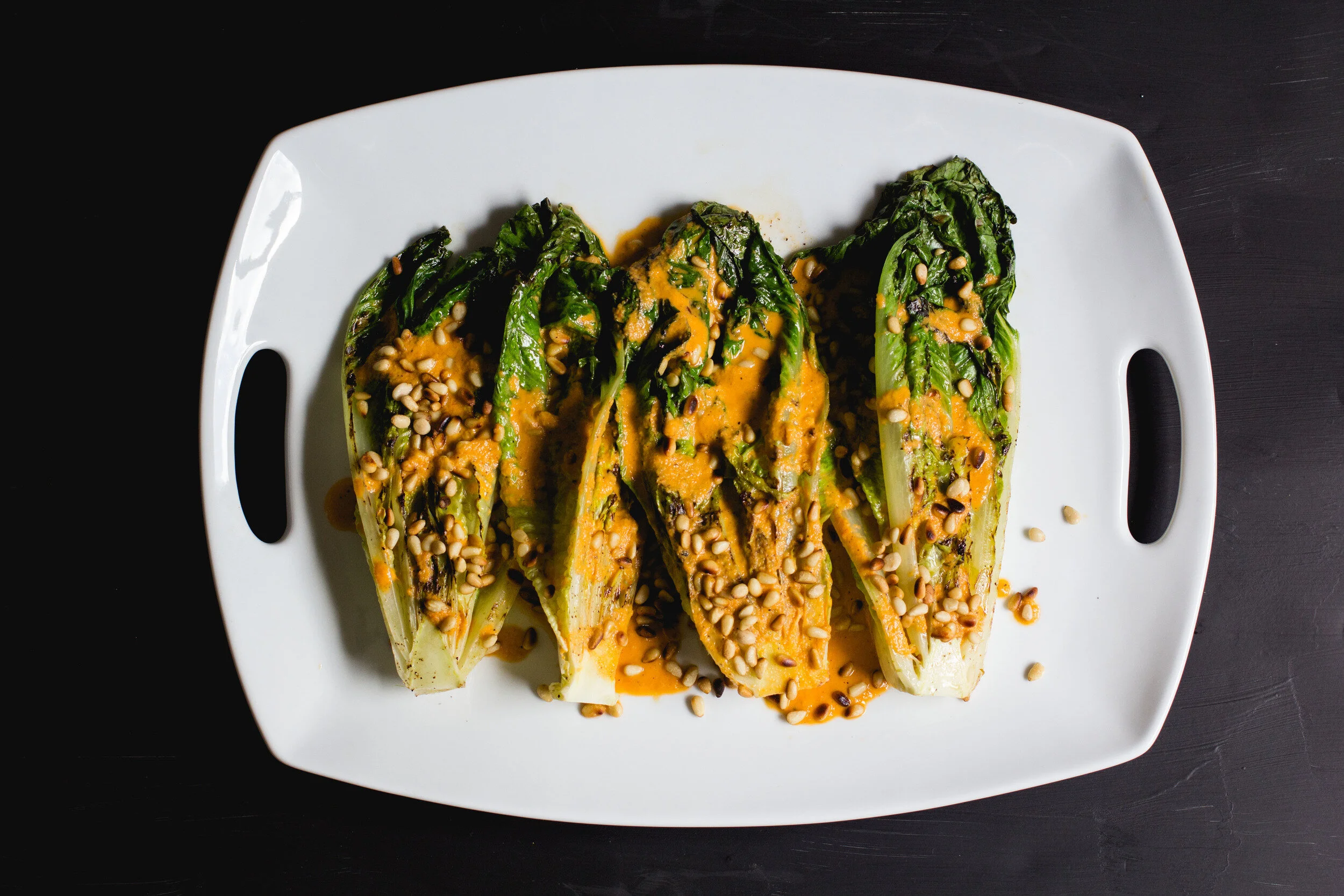 Grilled Romaine with Roasted Red Pepper Dressing